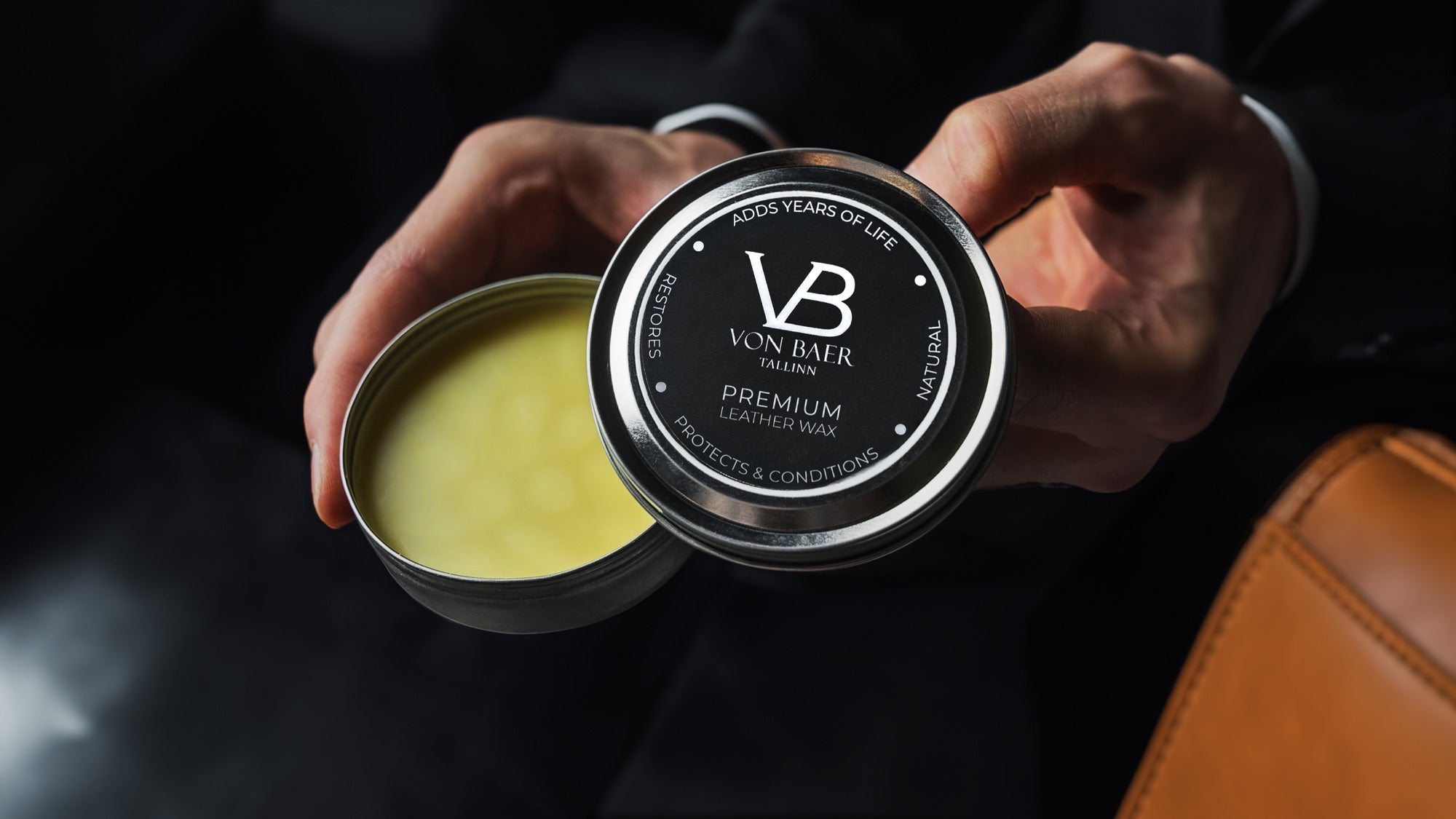 Our handmade Premium leather cream from a mixture of coconut and olive oil and Estonian organic beeswax prolongs the lifespan of leather products and improves their appearance. This cream penetrates leather to moisturize, rejuvenate and protect the fibres. As a result, the leather retains its elasticity and doesn’t become brittle. Additionally, the beeswax creates a water-repellent protective layer on the leather, which safeguards against excessive moisture and grime, while making the leather surface smooth. The protective layer also improves the appearance of the leather by adding natural shine. Unlike the widely used silicone, beeswax allows the leather to breathe.