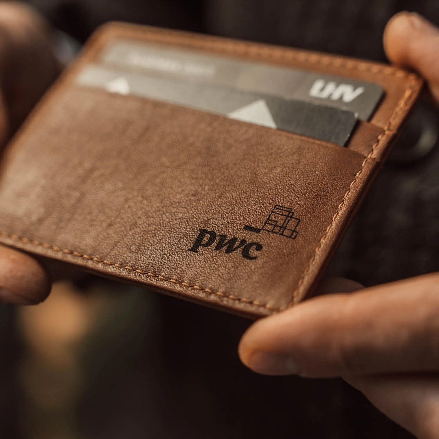 Each gift can be personalized through leather embossing, using traditional hot-press methods. Company logos, initials, or personal messages may be added upon request, creating items that feel uniquely yours.