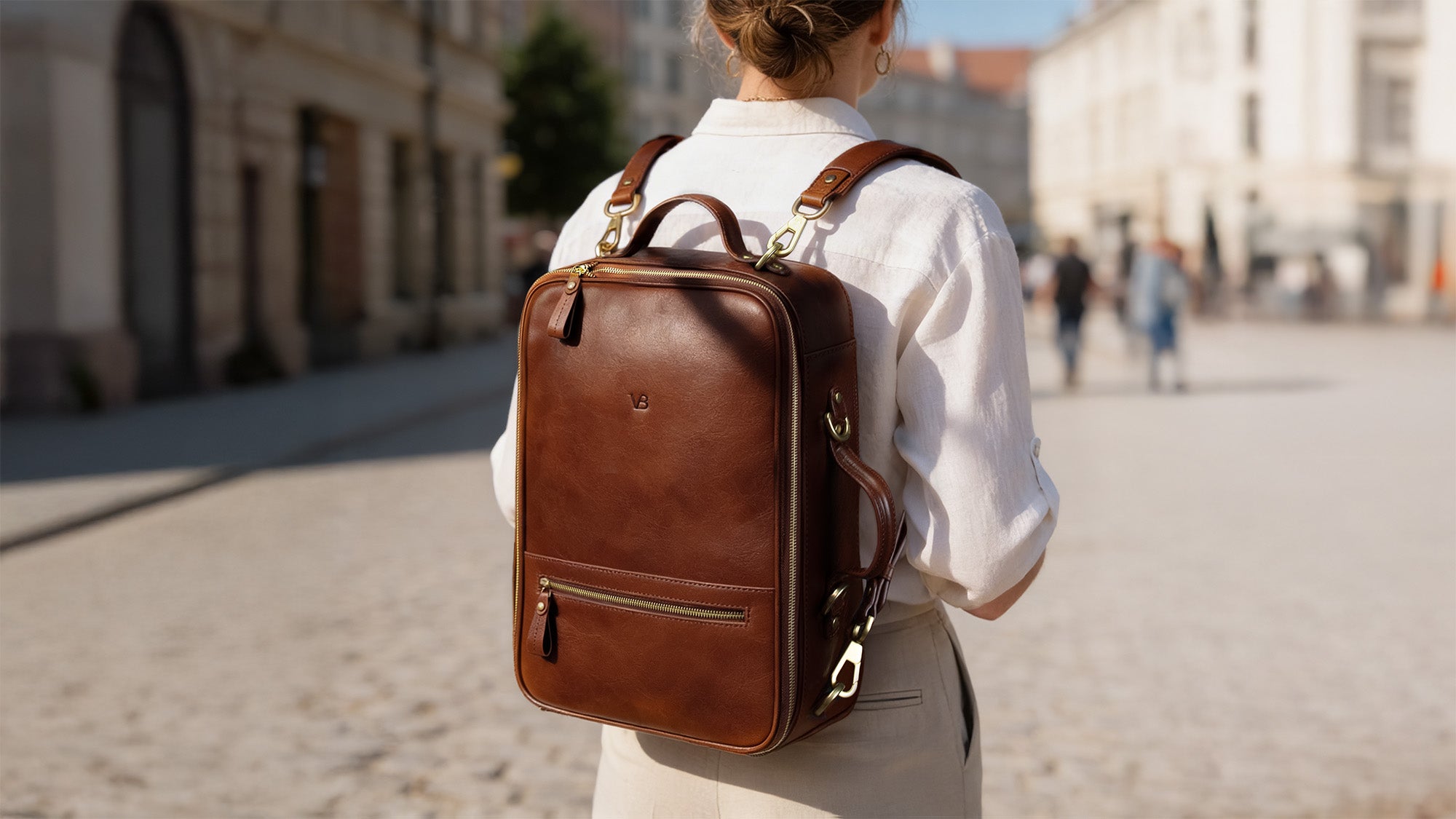 A modern all-in-one women's leather travel bag featuring refined design for stylish women of any age—that's our 10X!