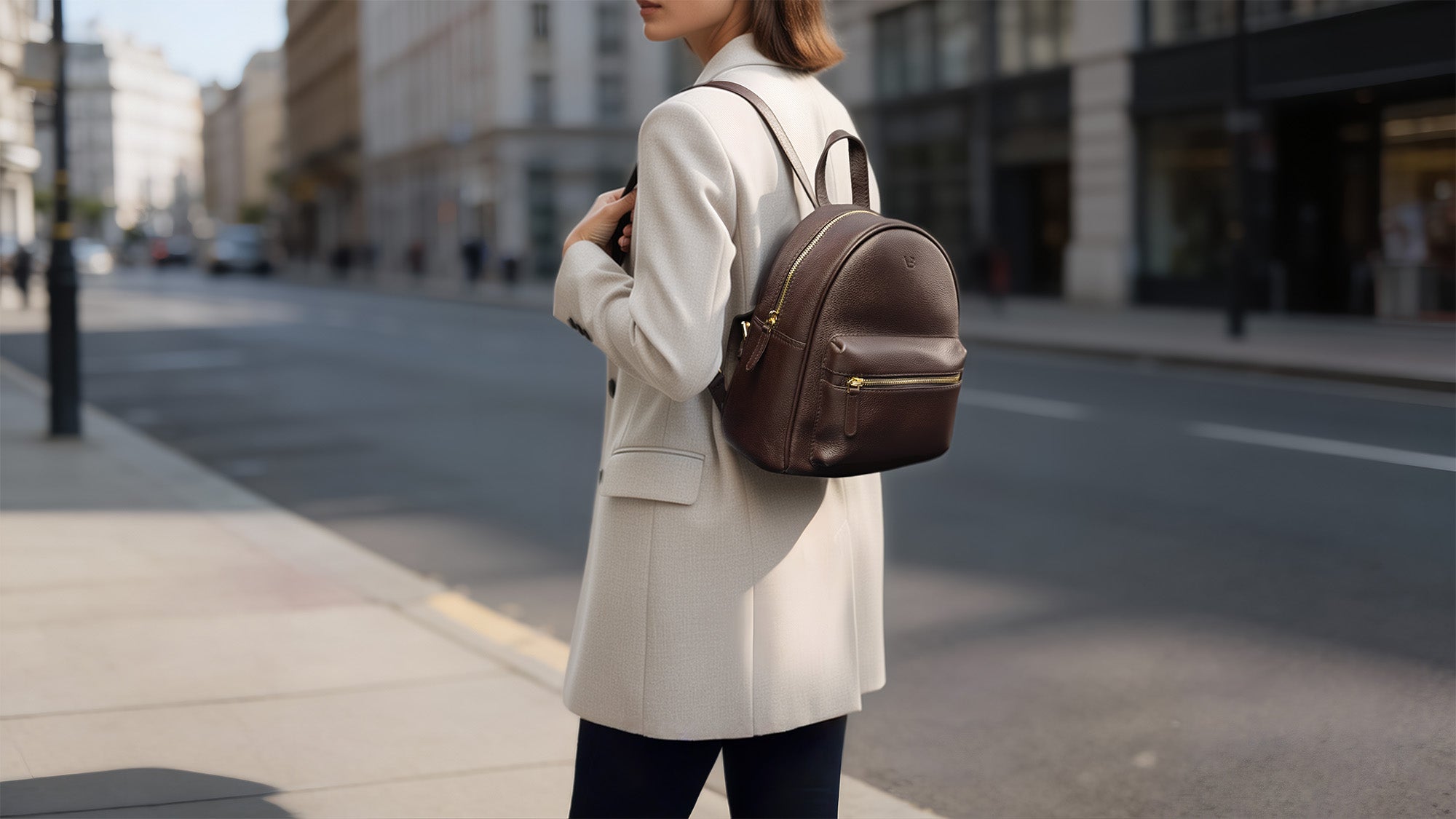 A small and elegant leather backpack designed to be the perfect everyday companion for a modern woman—that's Bella.