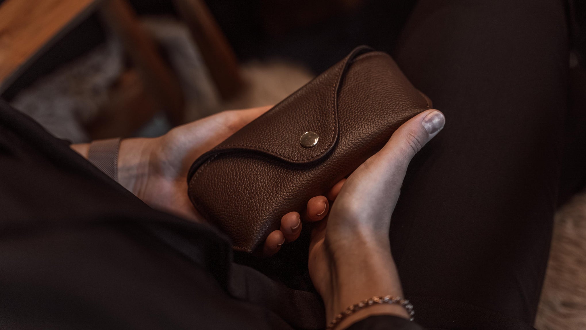 Thanks to the sophisticated design, this case is fit for any occasion – from everyday wear to special events. The case is slim enough to put in most purses and handbags. The elegant and smooth velvet lining ensures that your glasses cannot be scratched while in the case, and it beautifully complements the supple leather exterior. As with all our products, we only use the finest hardware, and for this case, we used a Japanese-made Kane-M snap closure button that guarantees durability for years.