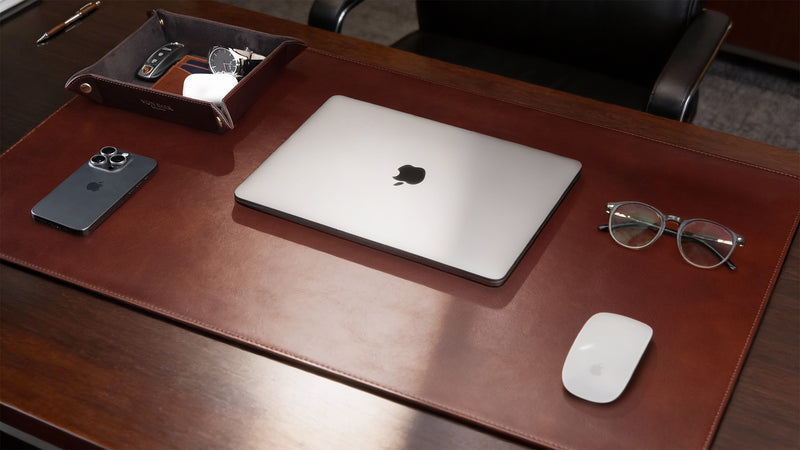 Treated with a special water-repellent coating, it ensures peace of mind during everyday use, protecting the surface from occasional spills without compromising the leather’s rich texture. Perfect for those who appreciate elegance, the Executive Large elevates your work desk with unmatched beauty and enduring sophistication.