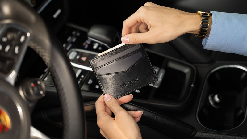 Von Baer wallets include a discreet RFID-blocking lining beneath the leather, shielding your contactless cards from unauthorized scans. This subtle layer of protection keeps your personal data secure, so your information remains yours alone.