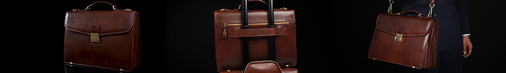 The interior of this briefcase is a true match-made-in-heaven for holding your everyday business and life essentials in a well-organised way thanks to its triple-gusset design. Furthermore, its zipped back pocket is perfect for quick and easy access to key necessities. The solid brass hardware ensures lasting durability and elegance.